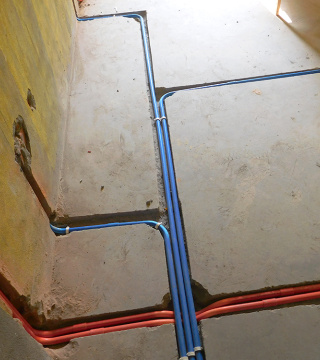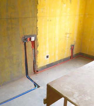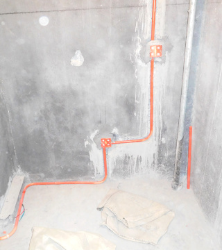 排水施工要求弹线定位,新老管接触点40变50的弯头,排水分路使用斜三通(不得用正三通),连接PVC胶饱满,洗衣机用排水管直径不得小于50cm:要注意地面泄水坡度。