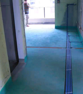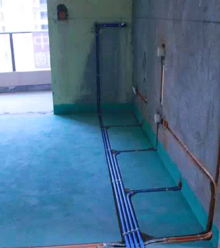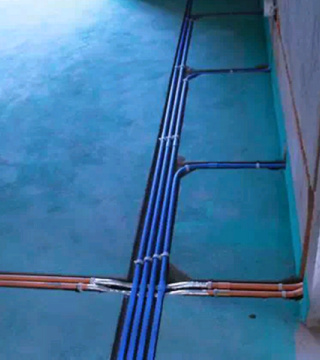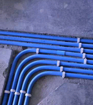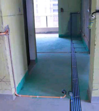 电源线管暗埋时,与弱电管线等保持500mm以上距离,电线管与热水管、煤气管之间的平行距离不小于300mm。