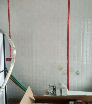 用水泥砂浆进行墙面找平,调制好水泥黄沙配比,瓷砖充分浸润,铺贴,保持不空鼓。
