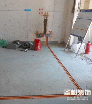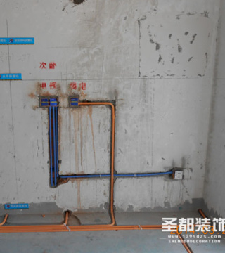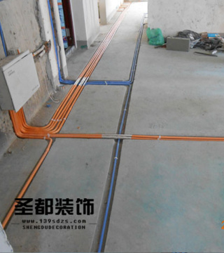 电源线走向横平竖直,不可斜拉,并且避开壁镜,家具等物的安装位置,防止被电锤、钉子损伤。电源线埋设时,与电热、水管及弱电管线等保持500MM以上的距离。