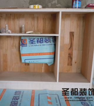 根据设计规格切割细木板,实细木板或开条双面锯口及一半间距不大于200mm,双面装饰板带胶压制时间不少于48小时,门四边25mm厚实木收口。