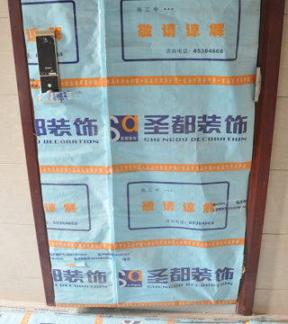 用专用保护膜,保护电梯口及走道,入户门也包裹起来,防止磕碰损坏。