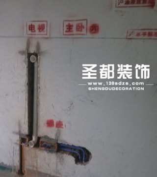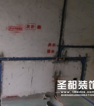 安装时依据水路、电路图确定水管、电线的位置,一定要避开水管、电线,防止打破水管,打断电线。
