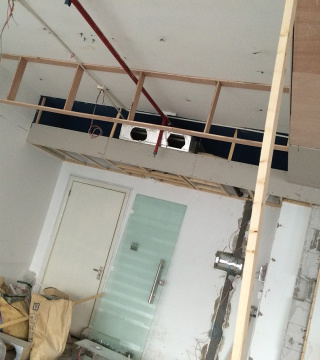 成品或半成品吊顶安装,吊顶高度适中,基层清洁,和底子灰结合牢固,无空鼓,力求整体美观。