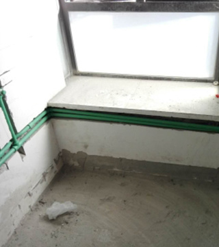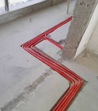 依用不同管材分配下线,外露头子在同一水平线上,管道平行、笔直。