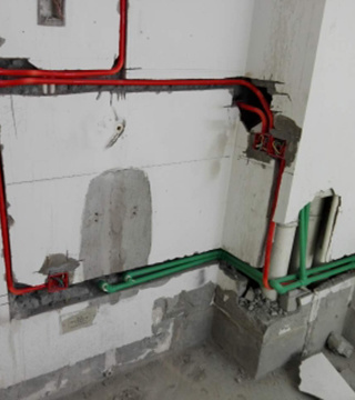 线路笔直整齐,强弱电间距均匀,交叉处成直角,挖槽边缘平整,根据别墅的结构进行调整。