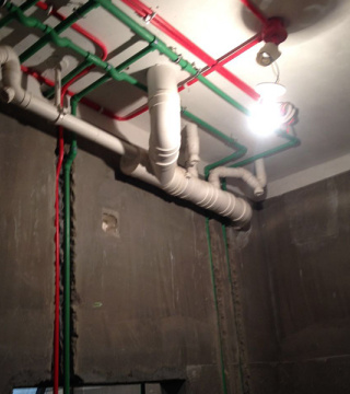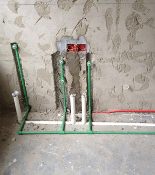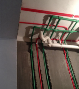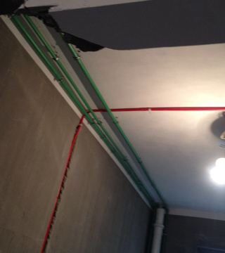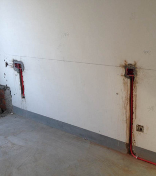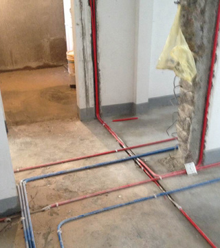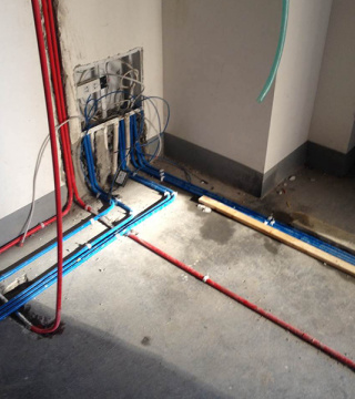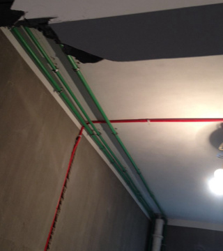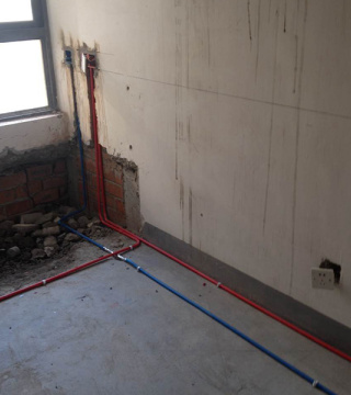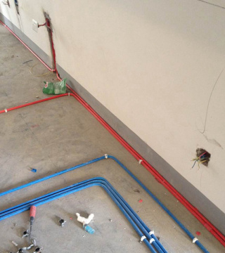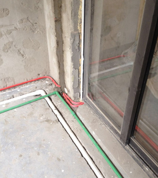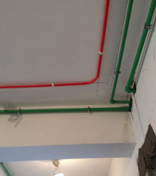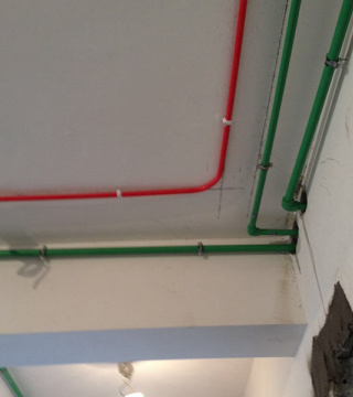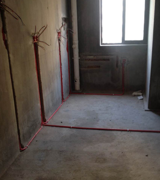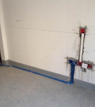 顶面电线用软弯管保护。走线根据开关插座的定点横平竖直,合理规划,减少不必要的损耗。