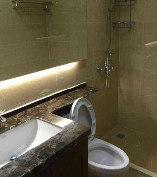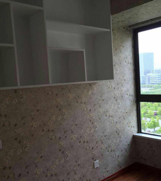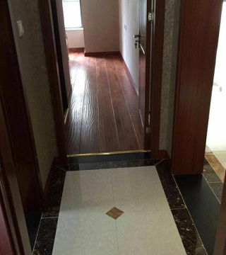 复合强化地板铺贴前进行找平,地板与墙壁之间预留出1cm左右的地板伸缩缝。地板间的缝隙也预留缝隙。