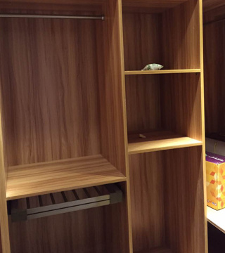 制作柜子前事先规划好格子的数量和用途,柜子的深度与设计图纸上保持一致。
