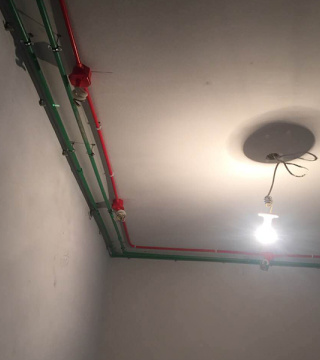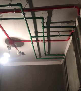 顶面水管与电线交叉,电走上,水走下。电线交叉处用锡纸隔开,防止干扰。