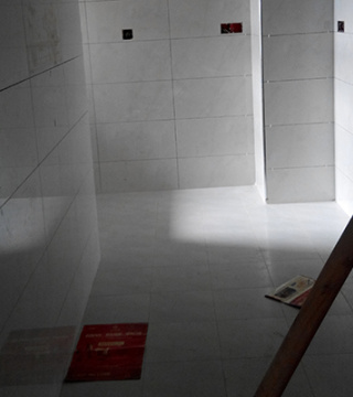 安装时依据水路、电路图确定水管、电线的位置,一定要避开水管、电线,防止打破水管,打断电线。