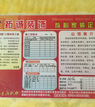 材料进场后要码放整齐,并且在工地现场张贴施工标准说明及重要联系人的联系方式,方便业主。