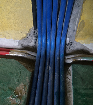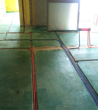 根据定位和走向开槽布线,讲究横平竖直,强弱电不能直接接触,避免产生安全隐患,同时也要根据业主生活习惯确定管线高度。