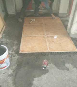 铺砖前进行预排,尽量减少非整砖的使用。铺贴后用专用锤子轻轻敲打紧实。