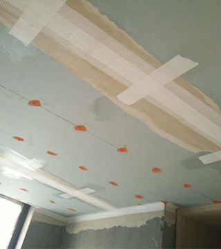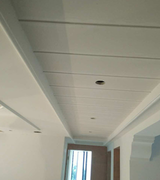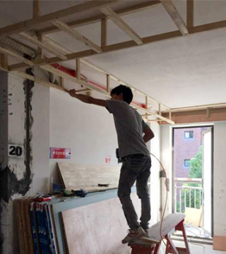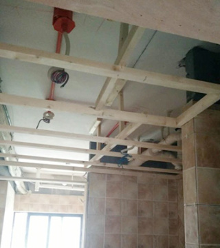 吊顶高度适中,基层清洁,和底子灰结合牢固,无空鼓。