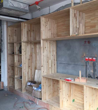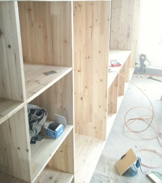 根据设计规格切割细木板,板材表面洁净,接口整齐严实,间距适中。
