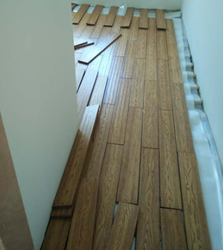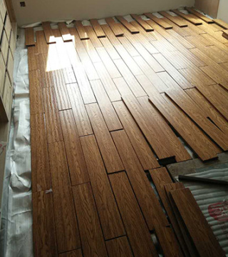 铺装定尺或不定尺长的实木地板时,纵向相邻板块宜相互排紧,横向相邻板块预留伸缝宽度应符合设计要求。