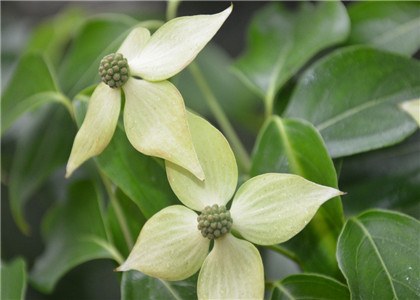 四照花是落叶灌木或小乔木。高可达9米,小枝细,绿色,后变褐色,光滑,嫩枝被白色的短绒毛。叶纸质,对生,呈卵形或卵状椭圆形,表面呈浓绿色,疏生着白柔毛,叶背呈粉绿色,有白柔毛。白色的总苞片一共4枚;花瓣状,卵形或者是卵状披针形;5~6月开花,光彩四照,所以名曰“四照花”。四照花的核果聚为球形的聚合果,肉质,9~10月成熟后会变为紫红色,俗称“鸡素果”。生态习性是四照花为温带树种,四照花产于长江流域诸省及河南、陕西、甘肃等地。多生于海拔60O~2200m的林内和阴湿的溪边。喜温暖气候和阴湿环境,适生于肥沃而排水良好的土壤。适应性强,能耐一定程度的寒、旱、瘠薄。性喜光,亦耐半阴,喜温暖气候和阴湿环境,适生于肥沃而排水良好的沙质土壤。适应性强,能耐一定程度的寒、旱、瘠薄,耐-15℃低温,在江南一带能露地栽植。夏季叶尖易枯燥。