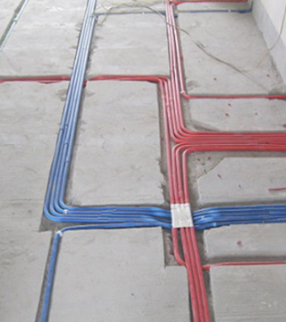 冷热水管遵循左侧热水右侧冷水,上热下冷的原则。相隔已短距离用管卡固定。