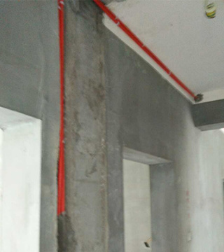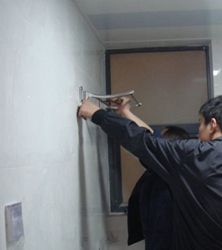 用水泥砂浆进行墙面找平,覆盖墙面施工的各种管线。