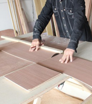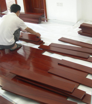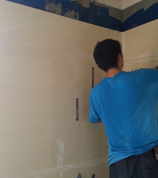根据预排进行铺贴,铺贴后用小锤子仔细敲击,使紧实。