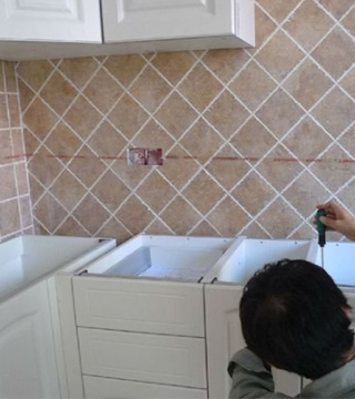 封线平直光滑,接头精细,柜体和台面结合严密,吊柜安装牢固、平直,台面无裂纹。