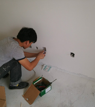 粉刷批腻子,平整墙面,为后续工作做准备。
