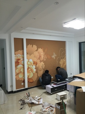 电视背景墙布已经贴好了,非常漂亮,图案印刷得很清淅,面料是一整副,很厚实。小橙很用心,为她点赞。安装也很快。